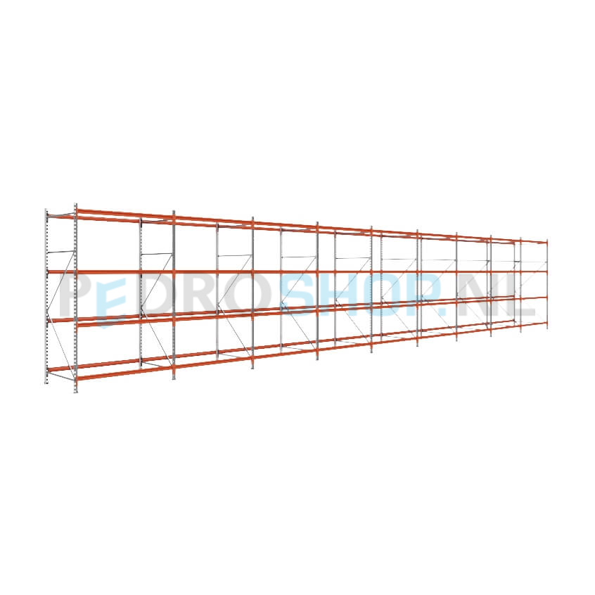 Grootvakstelling: 250cm (h) x 100cm (d) x 1402cm (l) x 4 niveaus