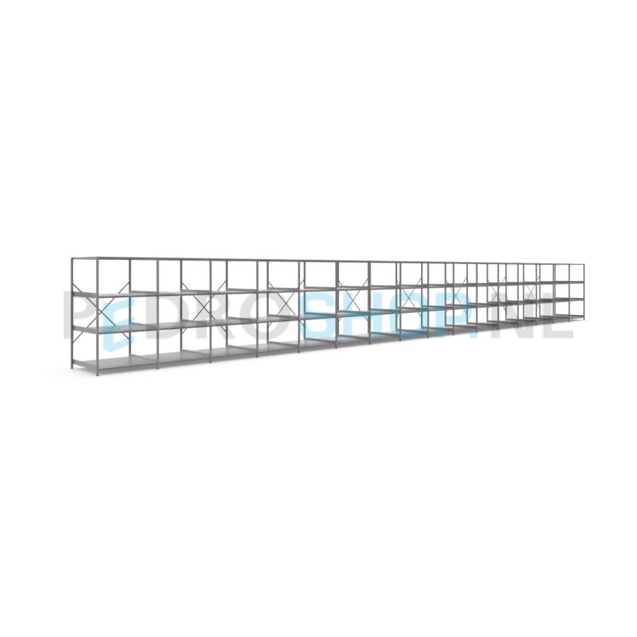Metalen stellingkast: 180cm (h) x 100cm (d) x 1613.2cm (l)