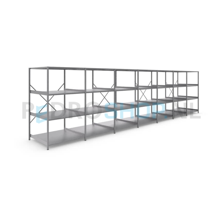 Metalen stellingkast: 180cm (h) x 100cm (d) x 707.8cm (l)