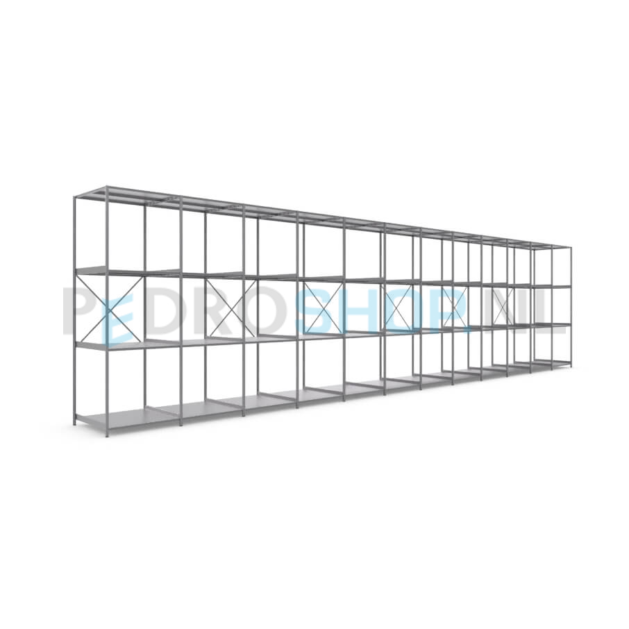 Metalen stellingkast: 300cm (h) x 100cm (d) x 1210.8cm (l)