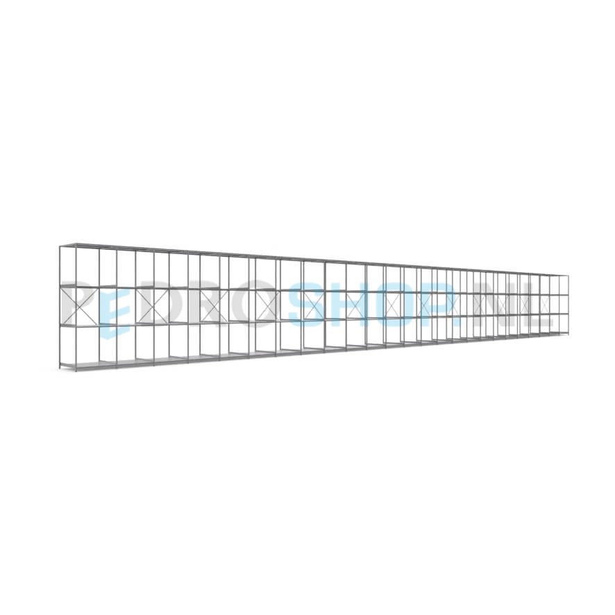 Metalen stellingkast: 300cm (h) x 100cm (d) x 2518.6cm (l)