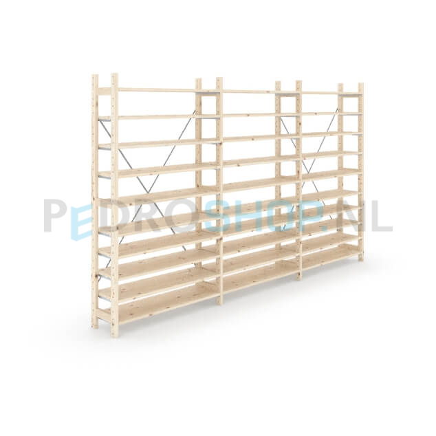 Houten stellingkast Easyrack: 180cm (h) x 30cm (d) x 303cm (l)