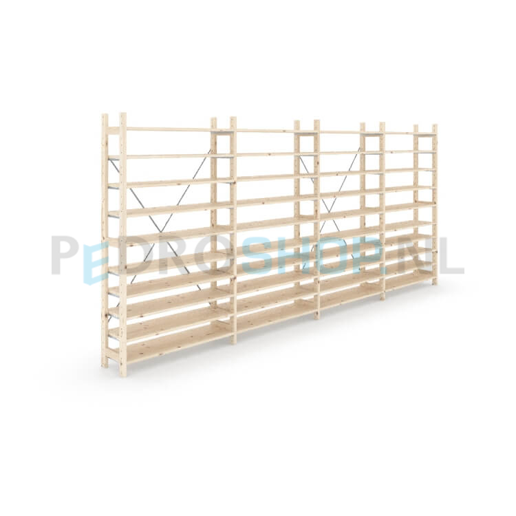 Houten stellingkast Easyrack: 180cm (h) x 30cm (d) x 403cm (l)