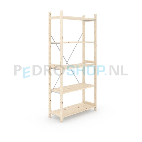 Eigen label houten stellingkast, dus goedkoop, flexibel en snel leverbaar! De onderdelen van de houten stellingen van ons eigen label zijn gemaakt van eersteklas Oost-Europees vurenhout en garanderen daarom jarenlang gebruiksgemak. Met de houten legbordstellingen en houten rekken kunt u uw magazijn eindeloos aanpassen, herinrichten en uitbreiden. U kiest voor betaalbare houten rekken, flexibiliteit met een goede kwaliteit! De houten stellingkast kunt u via onze handige configurator in een aantal stappen online samenstellen. Online uw houten stellingkast bestellen is nog nooit zo makkelijk geweest. Heeft u een groot archief in te richten met houten stellingen? Wij maken graag een passende offerte. Houten stelling kopen? Dan bent u bij ons aan het juiste adres.