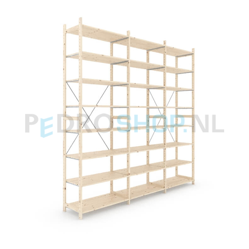Houten stellingkast Easyrack: 300cm (h) x 50cm (d) x 303cm (l)